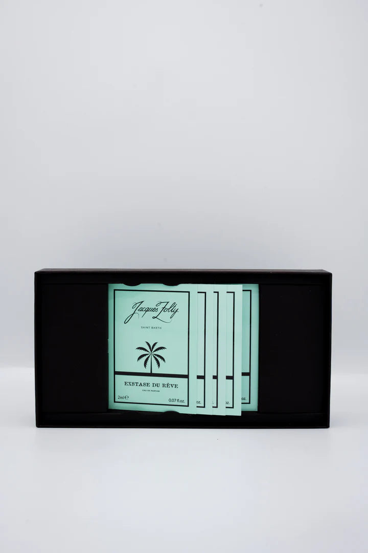 Saint Barth Discovery Kit Les Songes es una invitación a soñar a través del universo olfativo de Jacques Zolty. Este set exclusivo reúne una selección de fragancias inspiradas en los sueños, la sensualidad y la elegancia despreocupada de la isla de Saint Barthélemy.